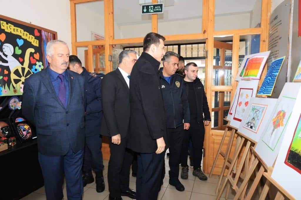 Program öncesinde protokol üyeleri Cumhuriyet İlkokulu bünyesinde eğitim öğretim faaliyetlerine devam eden özel eğitim öğrencileri tarafından yıl boyunca yapılan etkinliklerin olduğu sergiyi ziyaret etti.